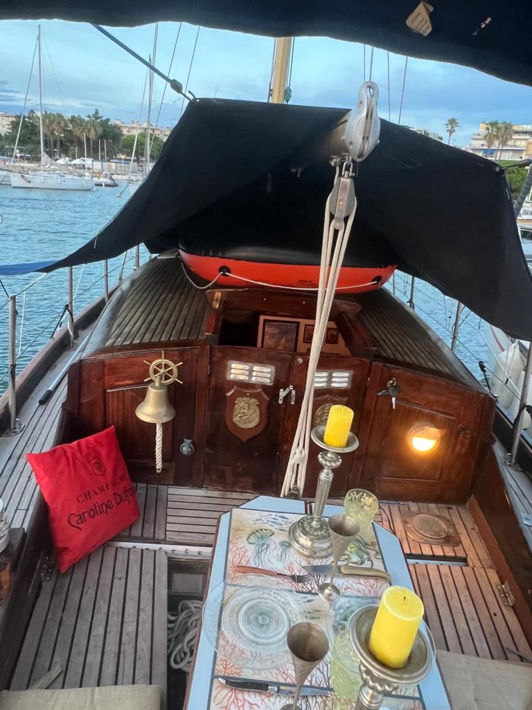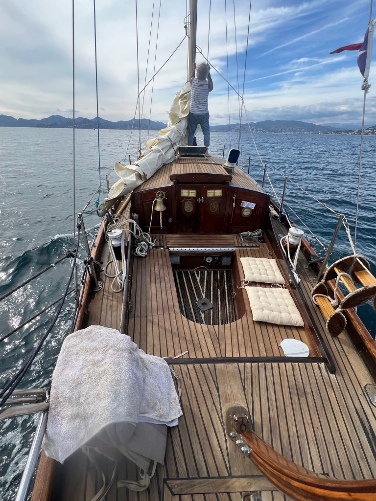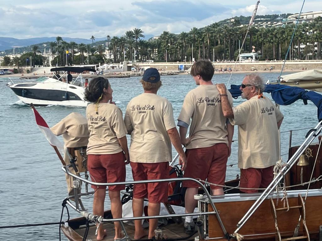 “Welcome to a fantastic day at the port of Cannes during the Royal Regatta in authentic classic French rigging!” Your Skiper ,ERIC BETHEUIL an JEAN HENRI will warmly greet you aboard the Sphinx member of the Yacht Club de Cannes