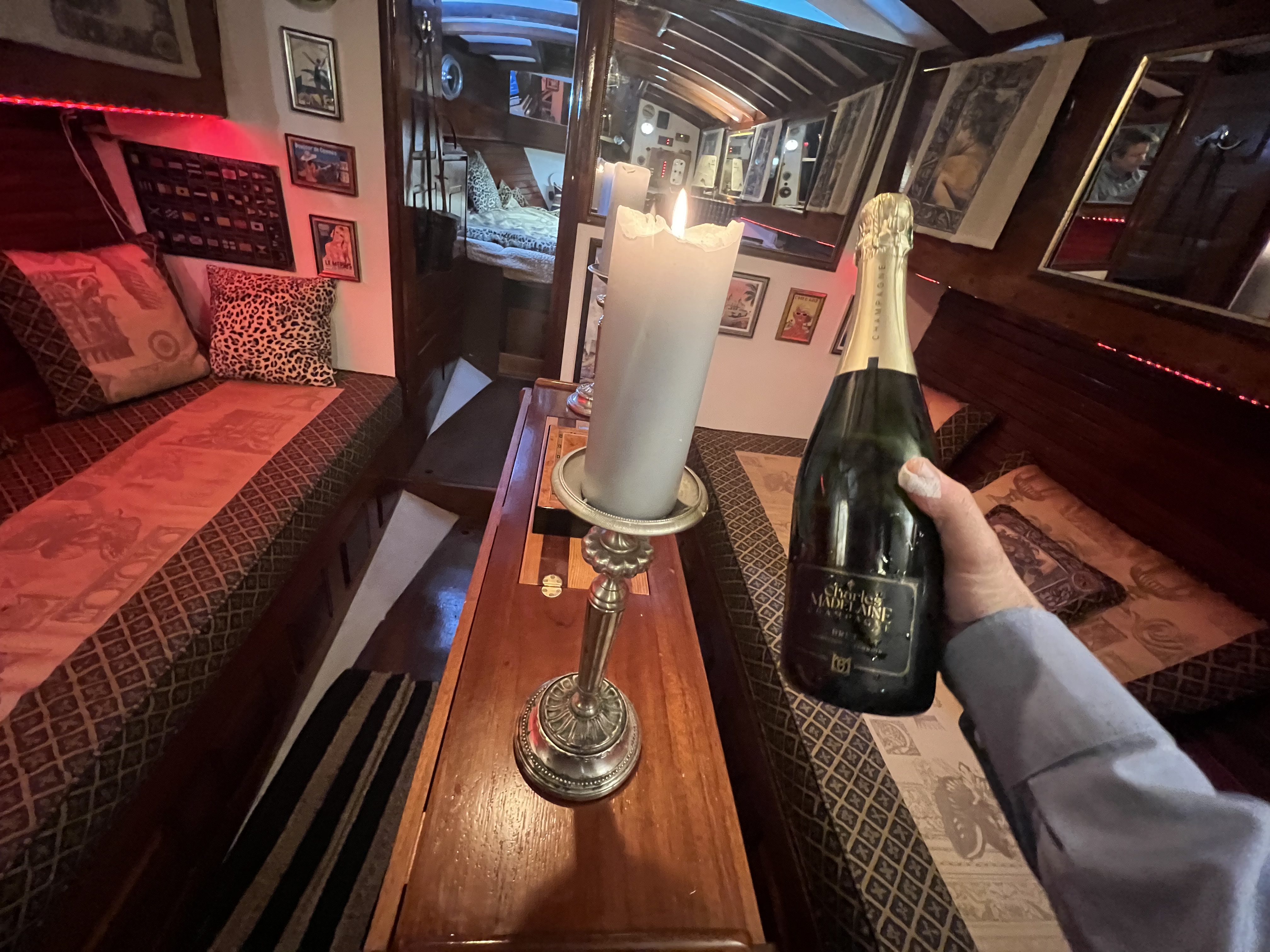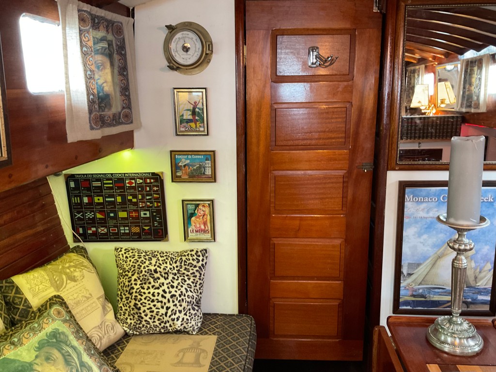 Join us aboard a stunning classic French sailing vessel that once belonged to French movie stars. Experience the magical charm of true maritime history on this floating museum, featuring an authentic collection of early 20th-century posters and nautical memorabilia.
