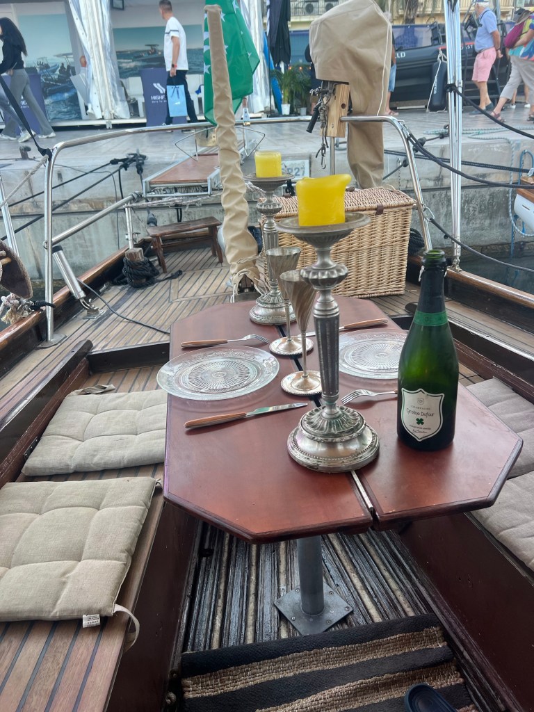 Experience a marquee culinary adventure aboard our boat in the port, with stunning views of the Bay of Cannes and magnificent sunsets! We can organize Champagne parties for up to 12 guests with delightful finger food, accommodating up to 15 people. For a more formal experience, enjoy seated dinners for 6 to 9 guests, available on request, ensuring a memorable culinary journey on the Côte d’Azur!